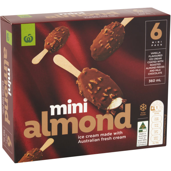 Woolworths Mini Ice Cream Sticks Almond 6 Pack 360ml Bunch